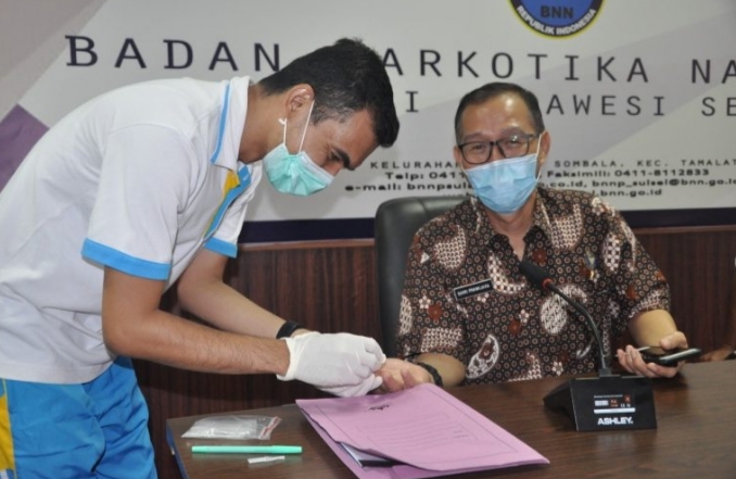 MAKASSAR — Rapid test dilakukan Badan Narkotika Nasional (BNN) Provinsi Sulawesi Selatan kepada pejabat, Kepala BNNK Tana Toraja, Kepala BNNK Bone, dan Kepala BNN Kota Palopo, serta seluruh pegawai yang berdinas di lingkup BNNP Sulsel.