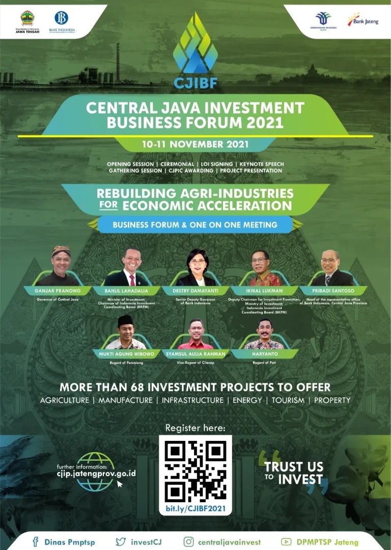 SEMARANG – Pemerintah Provinsi Jawa Tengah akan kembali menggelar Central Java Investment Business Forum (CJIBF) 2021. Ajang temu investor kali ini menawarkan lebih dari 60 peluang investasi, meliputi pariwisata, perikanan/pertanian/perkebunan, infrastruktur, manufaktur, dan energi.