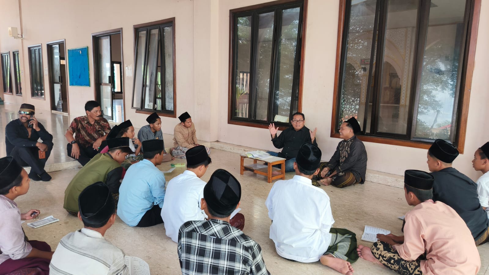 Selain meninjau fasilitas yang ada di areal pondok pesantren An-Nawawi Tanara, Firdaus juga sempat ikut menyapa para santri yang sedang belajar.