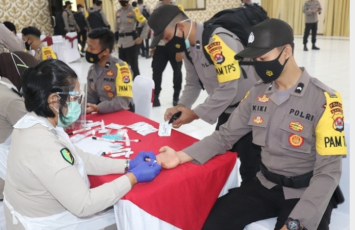Kabiddokkes Polda Banten, Kombes Pol I Gusti Gede MAndika mewajibkan agar seluruh personel yang akan melakukan pengamanan untuk menjalani rapid test, dilaksanakan di Gedung Serba Guna Mapolda Banten. Sementara, untuk pasukan Brimob rapid test dilakukan di markasnya.