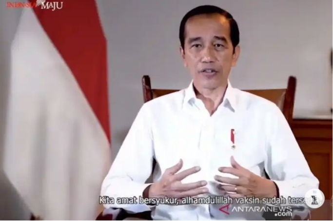 “Meski vaksin sudah ada kita tetap harus disiplin menjalankan protokol kesehatan. Tetap disiplin 3M, memakai masker, menjaga jarak, mencuci tangan, selalu harus terus kita lakukan. Semoga Tuhan yang Maha Esa memberkahi kita semua untuk bisa melewati ujian wabah ini,” kata Presiden dalam pernyataan di akun resmi Youtube milik Sekretariat Presiden, Minggu.