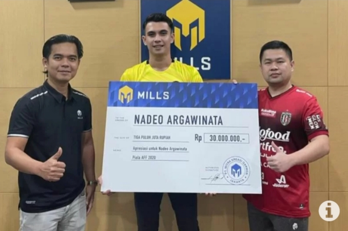 “Kami dari Mills tentu bangga dengan penampilan Nadeo di Piala AFF. Mungkin nominal yang kami berikan tidak besar, tapi ini bisa jadi tanda apresiasi kami kepada salah satu pemain terbaik Indonesia saat ini. Kami doakan agar karier Nadeo makin cemerlang, sehingga nama Indonesia bisa terangkat di kancah internasional,” kata CEO Mills Ahau.