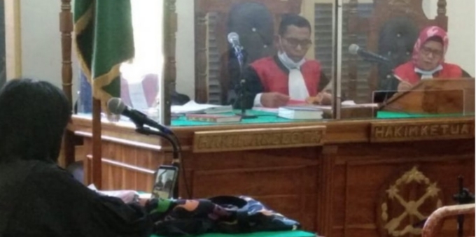 “Kamu divonis 6 tahun penjara. Bagaimana? Terima, pikir-pikir atau banding?” kata Sayed dengan nada agak lebih keras sembari memegangi telepon seluler (ponsel) saat video call dengan terdakwa Chandra Wijaya yang diancam bui 6 tahun.