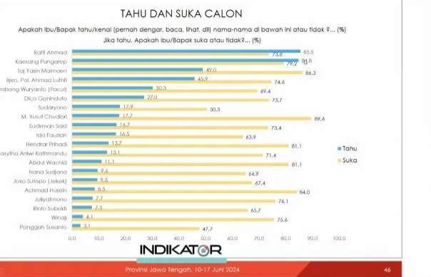 Sementara itu, selebritas Raffi Ahmad menduduki posisi bacagub terpopuler di Pilkada Jawa Tengah.