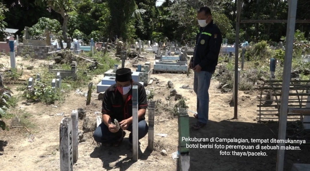 Video penemuan botol berisi foto wanita yang tertanam di kuburan itu, diketahui terjadi di areal pemakaman umum Desa Bonde, Kecamatan Campalagian.