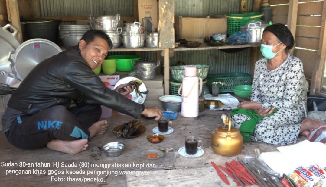 Saat wartawan berkunjung, Saada tampak sibuk menyeduh beberapa gelas kopi, untuk disajikan bersama beberapa bungkus gogos, penganan khas warga di daerah ini.