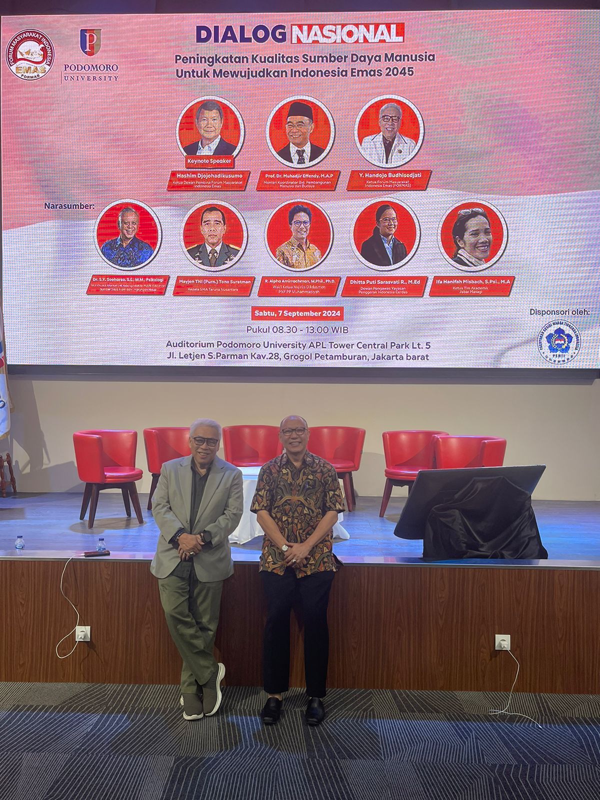 JAKARTA – Visi Indonesia Emas 2045 menuntut perbaikan serius pada dua aspek fundamental: kualitas gizi dan pendidikan. Demikian ditekankan dalam Dialog Nasional bertema ‘Peningkatan Kualitas Sumber Daya Manusia Menuju Indonesia Emas 2045’ yang diselenggarakan oleh Forum Masyarakat Indonesia Emas (Formas) dan Universitas Podomoro pada Sabtu (7/9/2024).