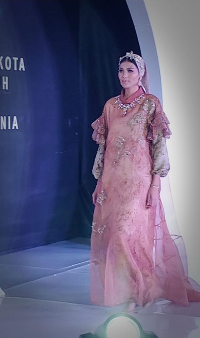 Kain kreasi putra-putri daerah itu tampak sangat anggun saat dipamerkan di catwalk. Perpaduan warna sederhana serta bentuk gaun yang elegan menarik perhatian pengunjung.