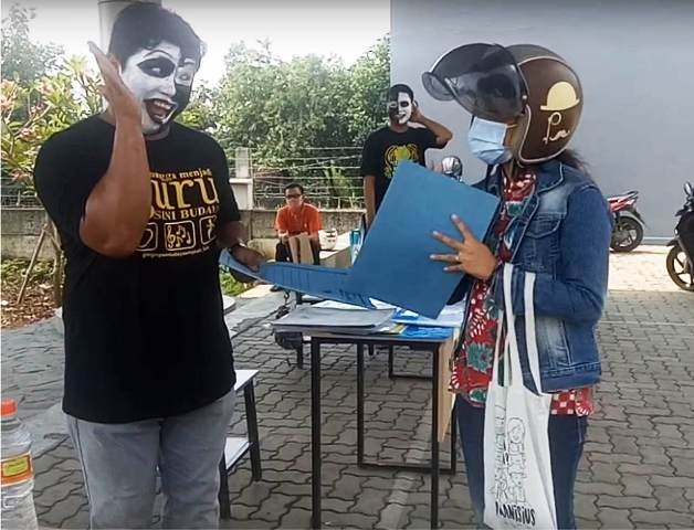 Pantomim Anti-Corona ini merupakan inovasi protokol kesehatan yang dilakukan saat orang tua atau siswa datang ke sekolah untuk mengambil modul dan mengembalikan tugas selama pembelajaran daring sepekan.
