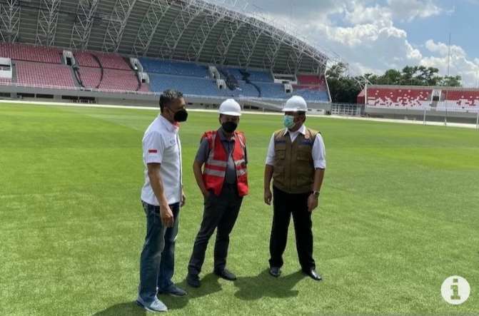 Selain itu, Menpora juga melihat kondisi terkini lapangan rumput di stadion yang berdiri sejak tahun 2004 itu.