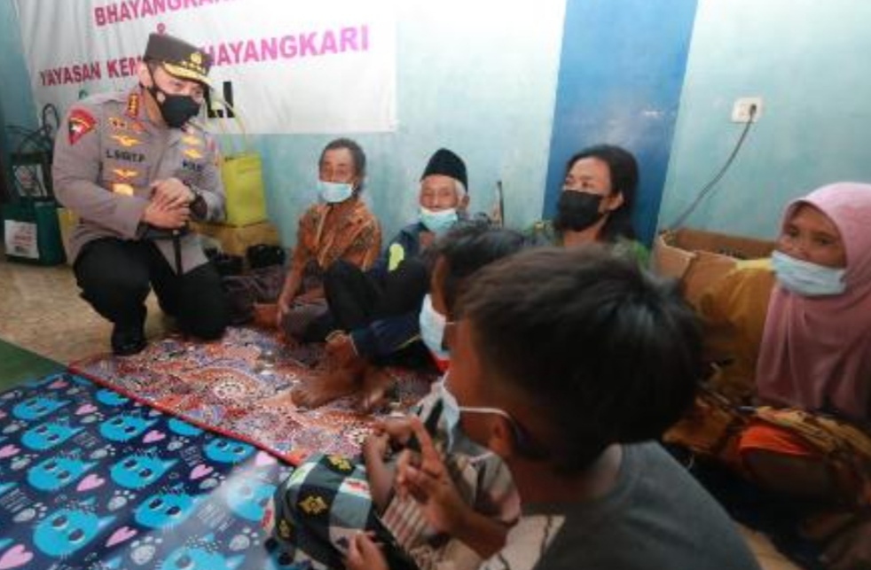 Tiba di lokasi, Kapolri menuju tenda pengungsian dan berbincang dengan warga yang mengungsi akibat Erupsi Gunung Semeru.