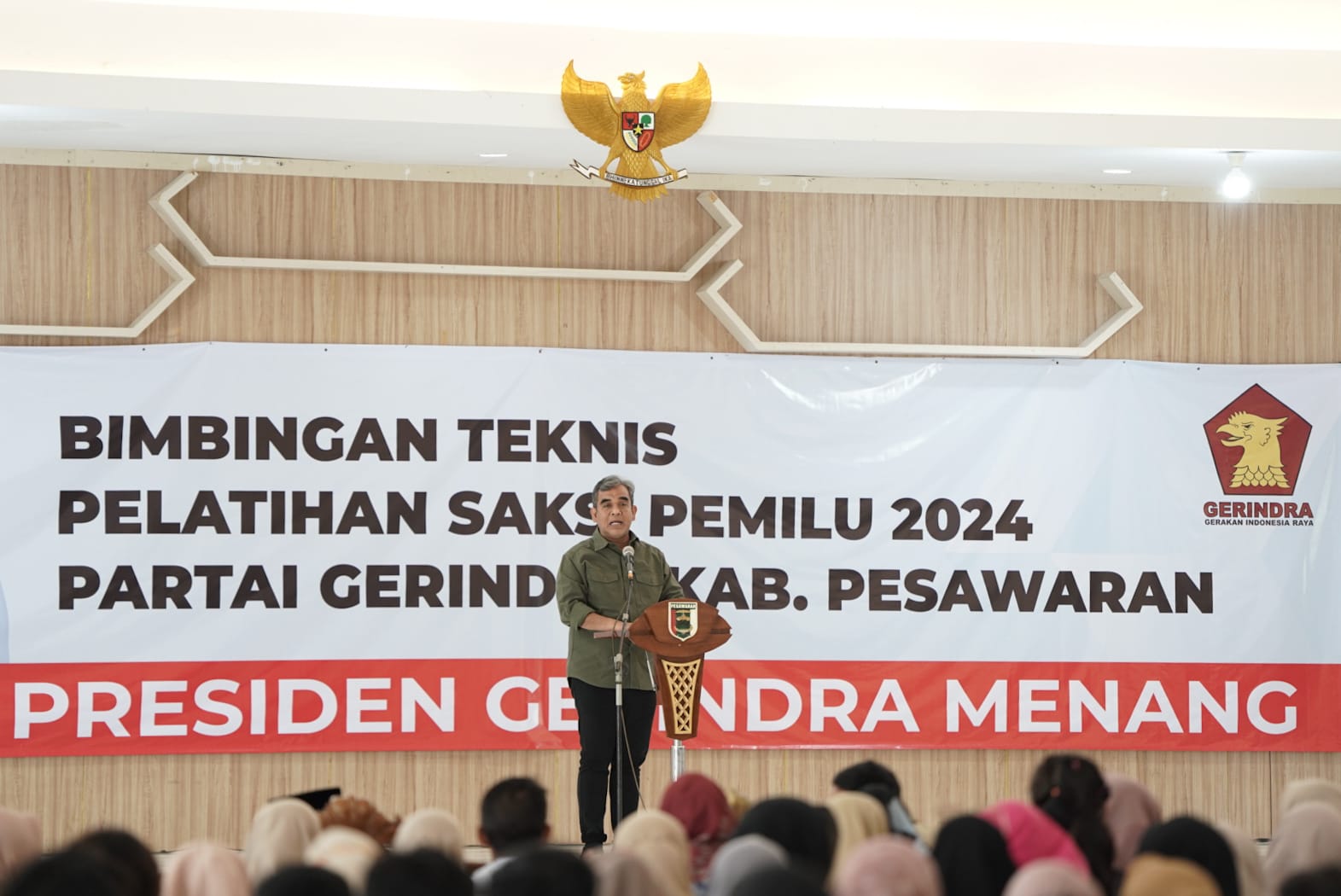 Sekjen Partai Gerindra Ahmad Muzani memberikan pembekalan dan pelatihan kepada ribuan saksi TPS di Lampung, Selasa (9/1). Dalam sambutannya, Muzani mengatakan, saksi adalah tim sukses paling bawah di setiap TPS.