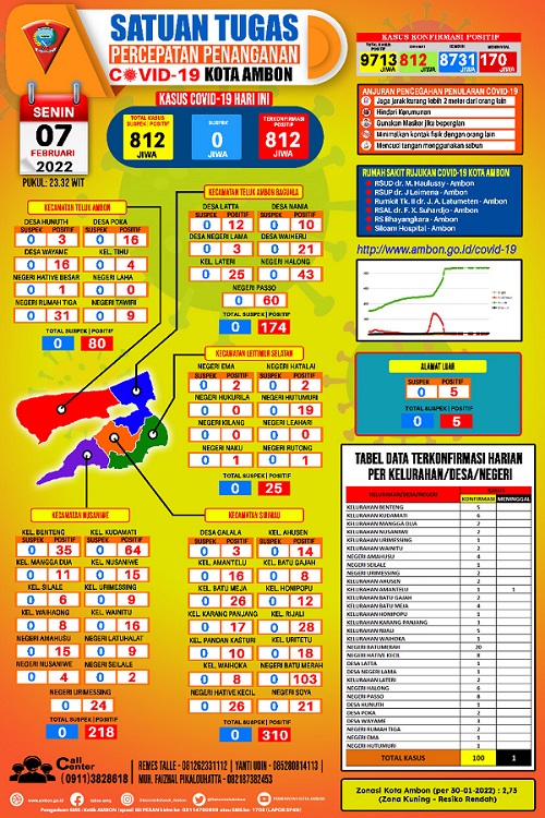 “Instruksi Walikota sudah berlaku, oleh karena itu, kita lagi sosialisasi untuk seluruh warga kota, dan besok rencana kita mulai lakukan sosialisasi besar baik kecamatan, desa, kelurahan bahkan dalam kota ini. Mengingat perkembangan serta kenaikan Covid-19 yang luar biasa, sehingga pengaturannya, bahwa pegawai yang masuk kantor hanya 50 persen dari masing-masing Organisasi Perangkat Daerah (OPD),” katanya kepada info-ambon.com, grup Siberindo.co di Balai Kota Ambon, Selasa (8/2/2022).
