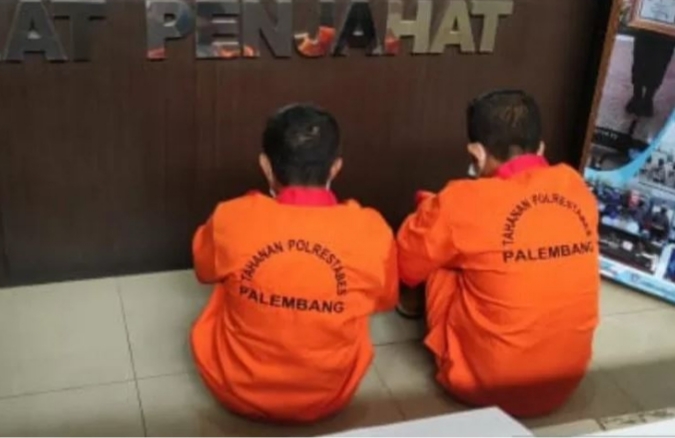 Keduanya lantas digelandang ke Polrestabes Palembang untuk diperiksa.
