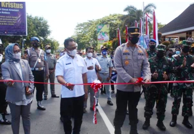 Peresmian ditandai pemotongan pita oleh Kapolda didampingi Sekretaris Daerah Maluku Kasrul Selang di ruas jalan Slamet Riyadi.