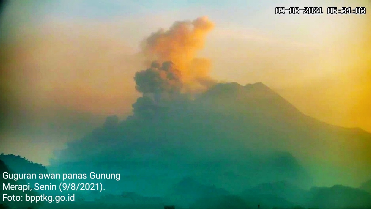 Sehari sebelumnya, Minggu (8/8/2021) terjadi rangkaian guguran awan panas pada pukul 4.58 WIB dan pada pukul 07.29 WIB.