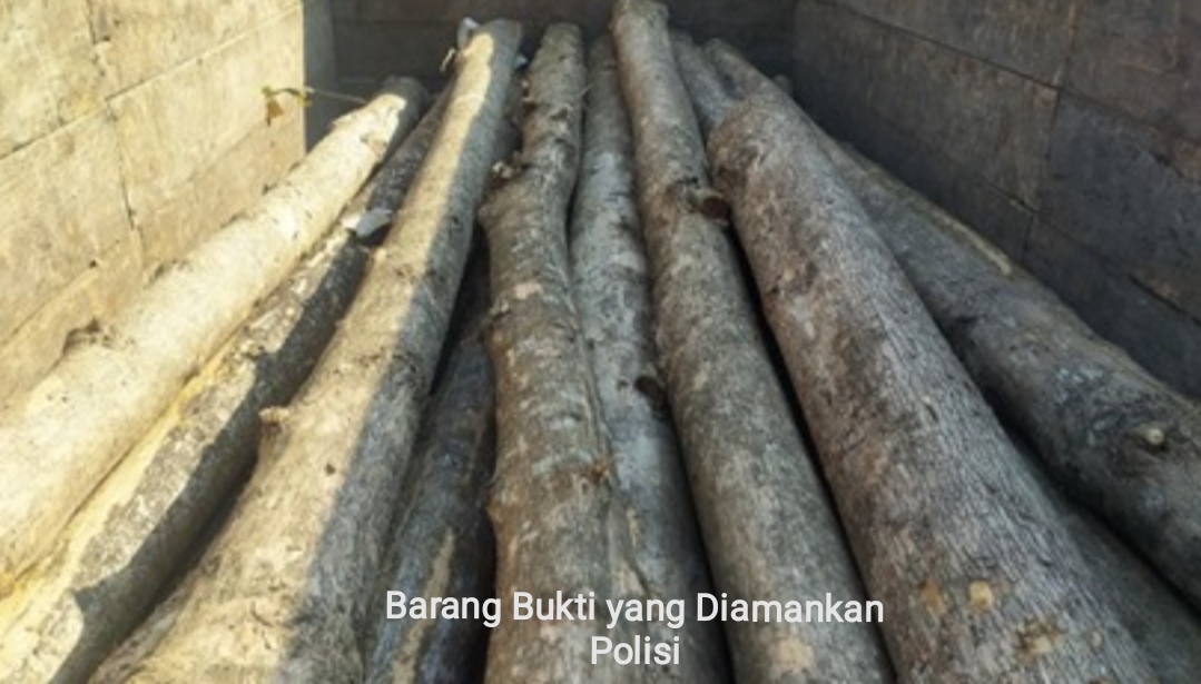 Selain itu juga diamankan 14 batang kayu jati ukuran 2 Meter dari hasil kejahatan serta satu gergaji kayu.