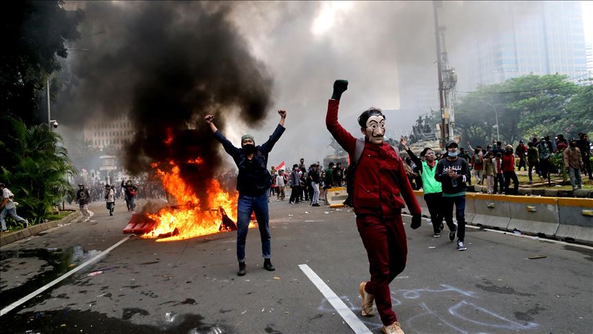 Aksi mogok nasional oleh buruh dan unjuk rasa mahasiswa telah berlangsung sejak Selasa, 6 Oktober 2020 setelah Dewan Perwakilan Rakyat (DPR) mengesahkan Undang-Undang Cipta Kerja. (oke/sep)