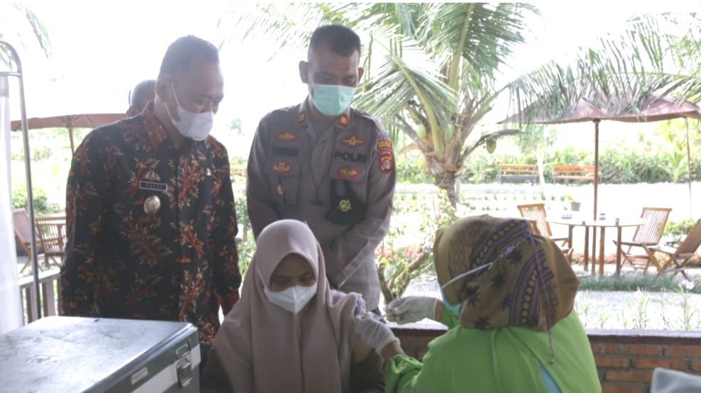 PRINGSEWU – Wakil Bupati Pringsewu meninjau kegiatan vaksinasi Covid-19 di Taman Wisata BMJ Wonodadi, Gadingrejo, Pringsewu, Lampung, Kamis (7/10/21).