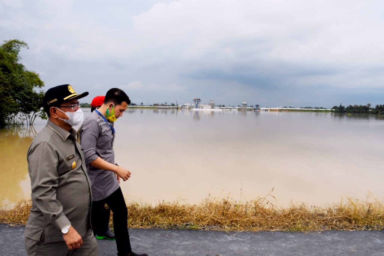 Turut serta dalam peninjauan banjir, Ketua DPRD Sergai dr M Riski Ramadhan Hasibuan, SH, SE, MKM, Kepala BPBD Sergai H Henry Suharto, SH, Kasat Pol-PP Drs Fajar Simbolon, M Si, Camat Sei Bamban Juniar Gultom, Kabag Protokol dan Komunikasi Pimpinan, Erfin Fahrurrozi, S STP, MSi.