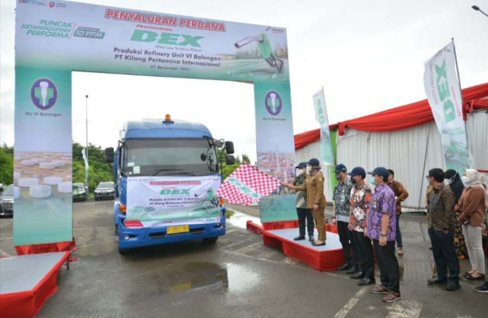 dalam prosesi penyaluran perdana Pertamina Dex 10ppm, Selasa (7/12/2021) mengatakan, penyaluran perdana Pertamina Dex 10ppm adalah bukti kolaborasi dan sinergi antara subholding Refinery & Petrochemicals dan subholding Commercial & Trading yang bekerjasama mengkomersilkan produk unggulan ini.