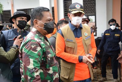 SUMEDANG–Kepala Badan Nasional Penanggulangan Bencana (BNPB) Letjen TNI Doni Monardo didampingi Pangdam III/Siliwangi Mayjen TNI Nugroho Budi Wiryanto meninjau bencana longsor di Dusun Bojong Kondang, Desa Cihanjuang, Kecamatan Cimanggung, Kabupaten Sumedang, Jawa Barat, Minggu (10/1/2021).