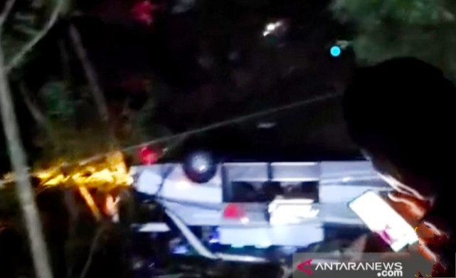 Kanit Laka Lantas Polres Sumedang Iptu Adam Rohmat mengatakan, petugas dibantu warga sekitar masih melakukan evakuasi penumpang dari dalam bus yang masuk jurang.