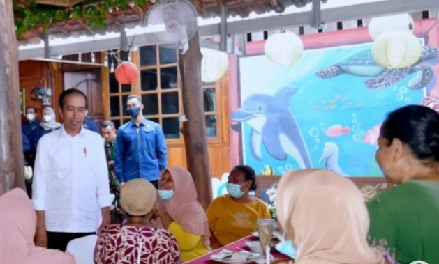 Sutarti, salah satu masyarakat yang saat itu dapat kesempatan diajak makan oleh Presiden, mengaku senang dan tidak menyangka.