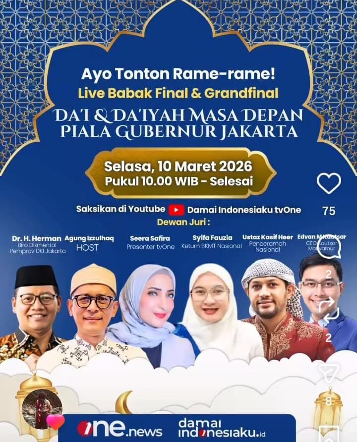 Kejuaraan Dai & Daiyah Masa Depan Memperebutkan Piala Gubernur Jakarta tingkat pelajar SMA/SMK/MA se-DKI Jakarta resmi hadir sebagai ajang pencarian talenta muda yang mampu membawa cahaya Islam di tengah dinamika kota.