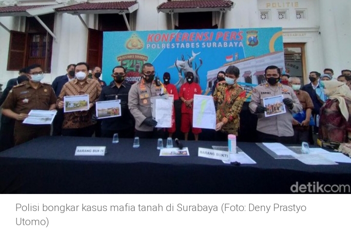 SURABAYA–Satgas mafia tanah Polrestabes Surabaya membongkar kasus mafia tanah di Surabaya. Tiga orang ditetapkan sebagai tersangka dalam kasus ini.
