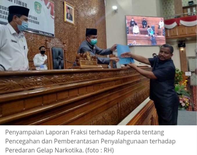 Dalam sambutannya, Ketua DPRD Kutim Joni menyampaikan seluruh fraksi menyetujui Raperda tentang Pencegahan dan Pemberantasan Narkotika dan Perkusor Narkotika, yang sudah dibahas beberapa waktu lalu.