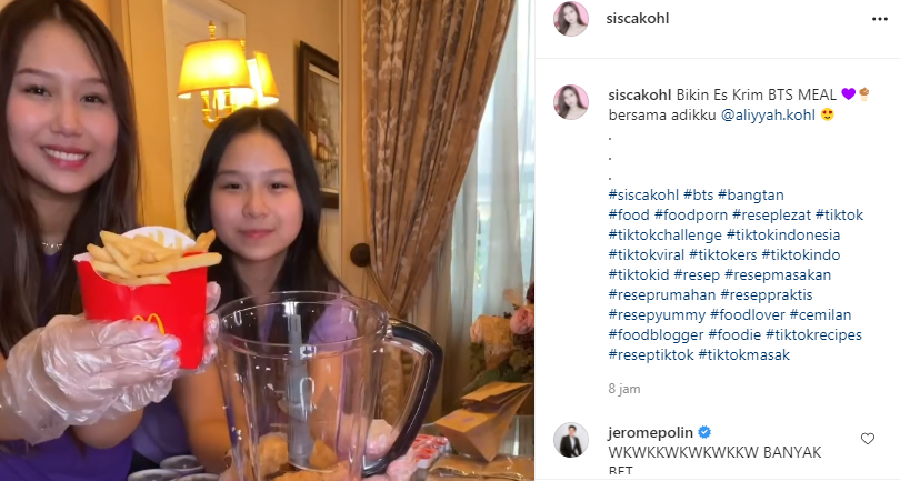 Sisca Kohl yang dikenal gemar membuat konten makanan mewah, kali ini bersama  adiknya membeli sekitar 40 paket BTS Meal.