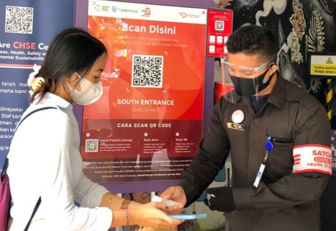 Seluruh orang yang masuk ke dalam mal, baik karyawan, manajemen dan pengunjung dipastikan sudah tervaksinasi dengan diwajibkan mengunduh aplikasi PeduliLindungi.