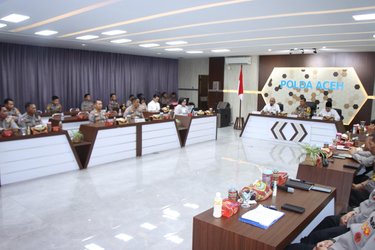 Tim Kompolnas diterima Wakapolda Aceh, Brigjen Pol. Misbahul Munauwar, S.H., dan Irwasda Aceh Kombes Pol. Djoko Susilo serta mendapat paparan secukupnya oleh Dir.Intelkam Polda dan oleh Karo Ops, Polda. Dalam sambutan Kapolda yang dibacakan oleh Wakapolda, memaparkan bahwa Polda Aceh telah melaksanakan kegiatan Pemilu serentak 2024 lalu telah berjalan damai dan sukses.