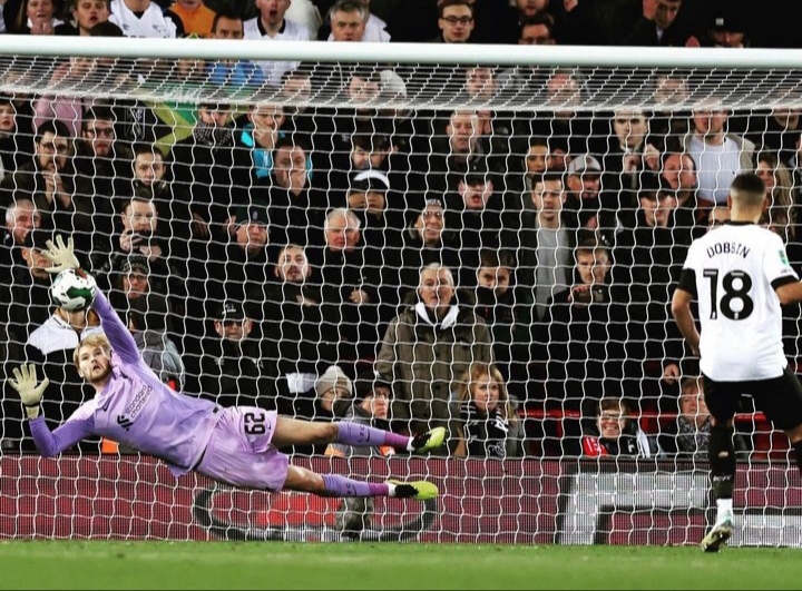 Caoimhin Kelleher menjadi pahlawan bagi tim tuan rumah setelah sukses menggagalkan tiga tendangan pemain lawan.
