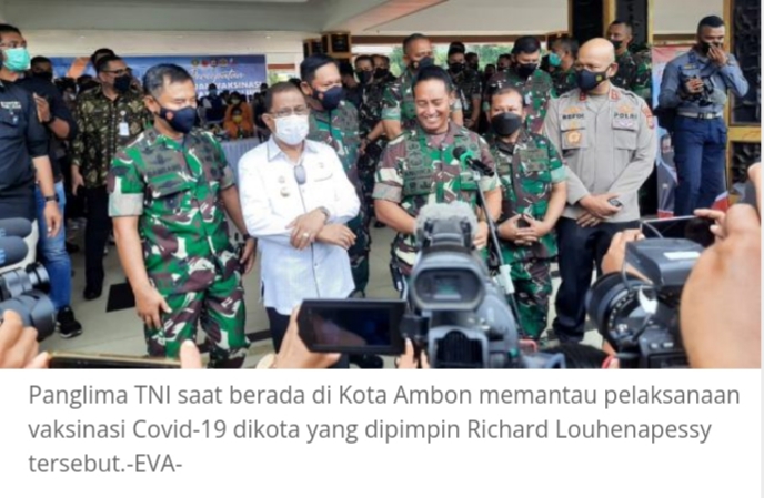 AMBON–Panglima TNI Jenderal Andika Perkasa mempersilakan masyarakat Kota Ambon untuk mengikuti booster. Secara teoretis booster belum dibuka, tapi bagi mereka yang sudah menginginkan dan kebetulan stok vaksin masih cukup, booster bisa dilakukan.