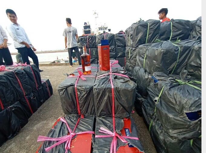 BATAM – Ditpolairud Polda Kepri menggagalkan penyelundupan rokok dan minuman beralkohol dari Kota Batam ke Pekanbaru, Riau, Selasa (9/2/2021).