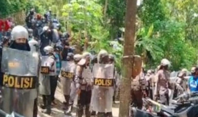 Kericuhan meletus saat akan dilaksanakan pengukuran lahan oleh pihak Badan Pertanahan Nasional (BPN) yang dikawal aparat kepolisian Selasa (8/2/2022). (*/Siberindo.co)