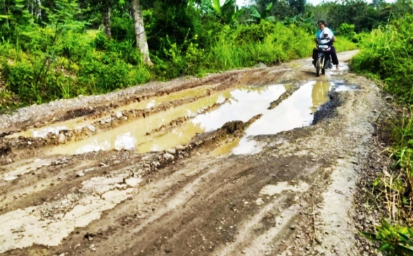 Bila turun hujan kondisi jalan tak ubahnya seperti “Kubangan Kerbau”. Padahal jalan tersebut baru selesai 2019 lalu, atau baru sekitar kurang lebih dua tahun.