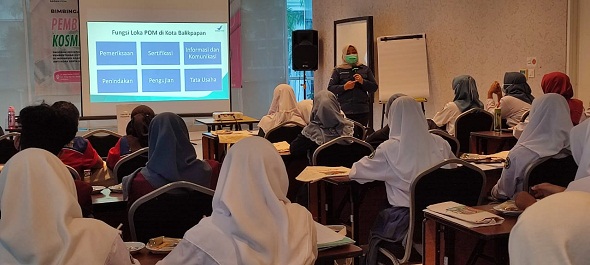 Dalam bimbingan teknis tersebut, selain pengenalan Badan POM oleh Kepala Loka POM Balikpapan Dra Sumiaty Haslinda, Apt, juga diberikan penjelasan mengenai kosmetik aman oleh Indah Widiarini S.Farm, Apt dari Loka POM Balikpapan.