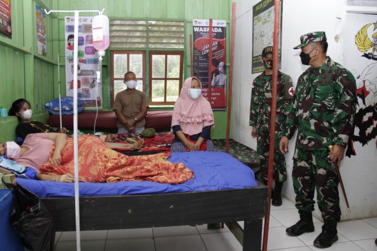 JAYAPURA–Danrem 172/PWY Brigjen TNI Izak Pangemanan selaku Komandan Kolakops meninjau Pos Pelayanan Kesehatan Sementara Satgas Pamtas RI-PNG Pos Kout Yonif 131/BRS KM 31 di kampung Arso 1, Kabupaten Keerom, Jum’at (9/7).