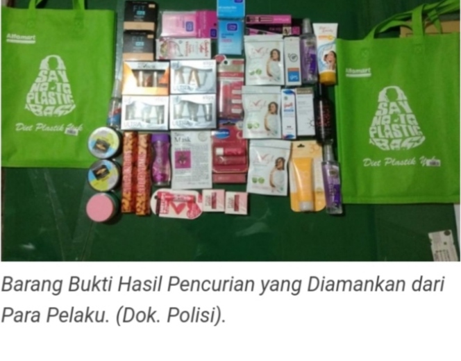 Dari total 24 jenis barang yang dicuri, 22 barang terdiri dari kosmetik sedangkan 2 barang lainya berupa makanan dan masker.