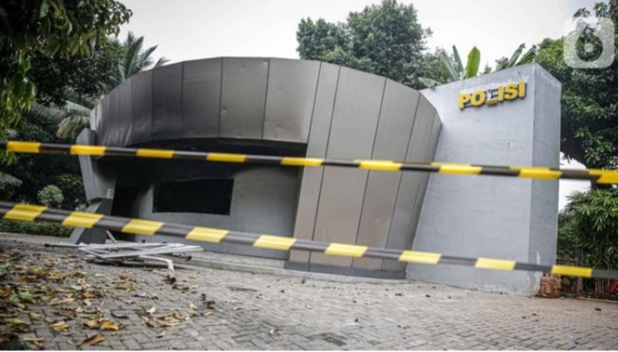 Tidak lama setelah bentrokan dengan aparat, sejumlah orang mendatangi pos polisi yang tepat berada di seberang Menara BNI.