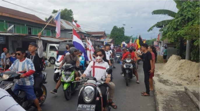 Berdasarkan pantauan wartawan, arak-arakan bendera dilakukan dengan berkeliling menggunakan sepeda motor hingga mobil.