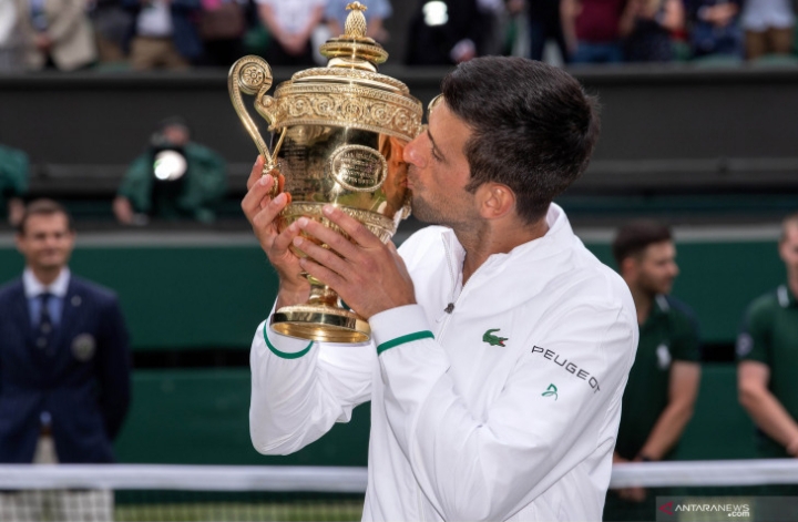 Petenis Serbia itu mendulang gelar di Grand Slam lapangan rumput untuk keenam kalinya, serta ketiga kalinya berturut-turut.
