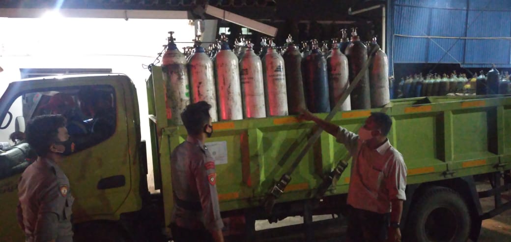 Tim gabungan Kodim 0616/Indramayu dan Polres Indramayu memfasilitasi pengadaan oksigen termasuk mengawal suplai oksigen dari Samator Gas Cirebon (SGC), Minggu,(11/7/2021).