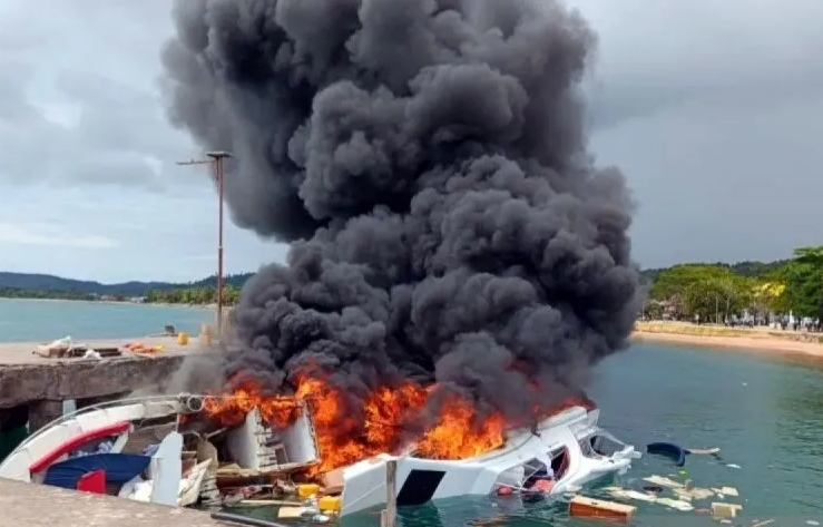 LTERNATE – Speedboat Bela 72 yang membawa pasangan calon (paslon) Gubernur dan Wakil Gubernur Maluku Utara nomor urut 4, Benny Laos dan Sabrin Sehe, mengalami kebakaran saat berlabuh di Pelabuhan Regional Bobong, Desa Bobong, Kabupaten Pulau Taliabu. Insiden tersebut terjadi pada Sabtu (12/10) dan dilaporkan oleh Kepala Basarnas Ternate, Fathurahman.