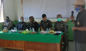 AnggotaDPRD Kabupaten Nabire, Clemans Danomira, saat hearing bersama Petugas Penyuluh Lapangan (PPL) di Distrik Nabire, Wanggar dan Yaro, di kantor Balai Penyuluh Pertanian (BPP) Distrik Nabire Barat, Kampung Wadio, Selasa (10/11) pagi, mempertanyakan kendala di lapangan sehingga sebagian besar lahan yang disiapkan Departemen Pertanian dan TNI di daerah ini terlantar, tidak dimanfaatkan oleh petani sebagai lahan pertanian.