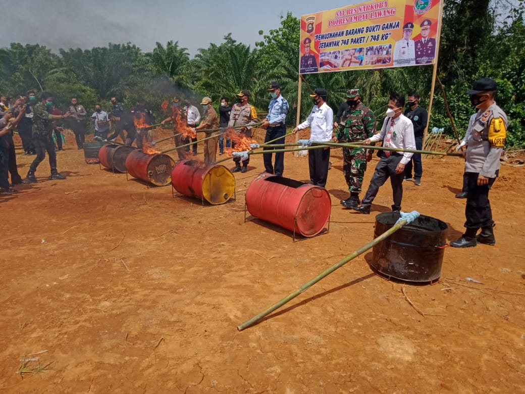 EMPAT LAWANG — Sebanyak 748 kilogram ganja kering asal Aceh, yang diamankan Polres Empatlawang 28 September lalu, akhirnya dimusnahkan. Pemusnahan 748 kg ganja kering tersebut sudah mempunyai kekuatan hukum tetap.