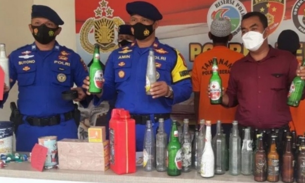 Selain pelaku, turut serta diamankan barang bukti berupa bom ikan berupa puluhan botol berisi amonium nitrat, sumbu, korek, benang, gunting, pisau, tas keranjang, jerigen 5 liter berisi amonium nitrat 32 potong sandal jepit yang dibentuk.